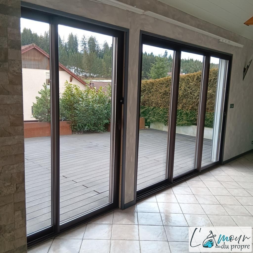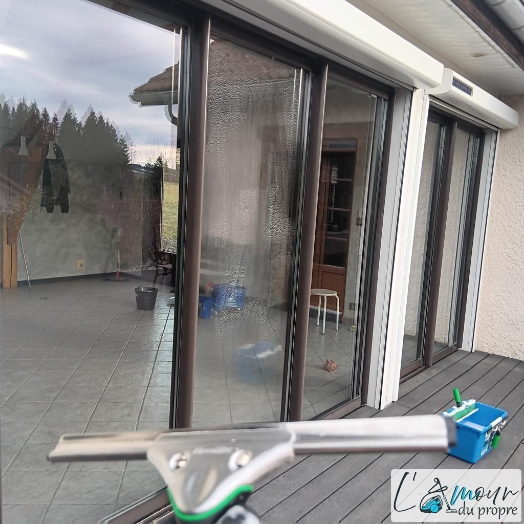 L'Ammour du Propre Besançon nettoie les vitrines de magasins, les vitres de logements, vitres d'entreprises, velux en hauteur, véranda et autres surfaces vitrées jusqu'à 16 mètres de hauteur.
